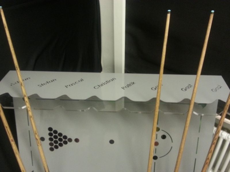 Und ich hab in meinem ganzen Leben noch nicht auf so einem schönen Tisch gespielt. Die Bandenhölzer sind ohne Mangel, ohne Kratzer ect.. Auch das Holz vom Gerüst ist super und die Stützen auch. Wirklich ein klasse Tisch!