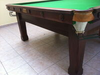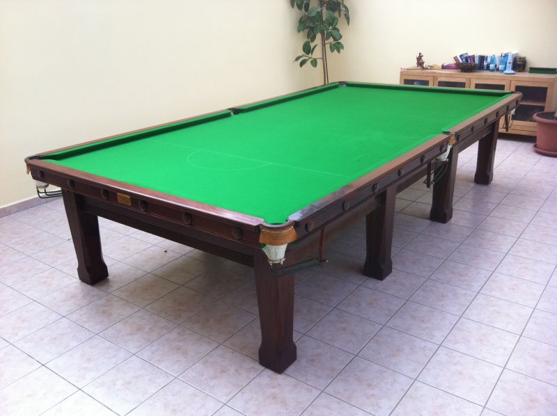 Fazit: Ein gerbauchter Tisch (kommt aus England) ist für mich als blutiger Anfänger genau die richtige Wahl gewesen. Der Zustand ist absolut in Ordnung. Die kleinen Bälle und die fiesen Taschen bringen einen zur Verzweiflung sind aber wohl genau das richtige Training. Von meiner Seite aus kann ich Snookerservice.de empfehlen.