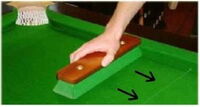 Man misst genau über dem Absturz, also dort, wo die Kugel in der Mitte der Tasche anfangen würde zu fallen!