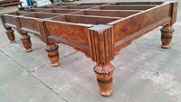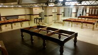Außerdem war die Bauweise des Unterbaus des Tisches viel solider. Heutzutage werden zwischen den Fußverbindern (die kurzen Bretter die die gegenüberliegenden Füße von links nach rechts verbinden) nur 1 Holzbalken lose angebracht (siehe Bilder). Bei Tischen von 1950 oder früher wurden 3 Balken pro Segment fest verzahnt angebracht. Was dem Tisch viel mehr Stabilität bringt! Sowas findet man heutzutage bei keinem Tischproduzenten mehr.