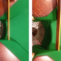 Uns ist beim Testen auch aufgefallen, dass die Holzbanden beim Einschlag der Kugeln vibrieren, wohingegen bei richtigen Steelblock Banden fast nichts vom Einschlag zu spüren ist.