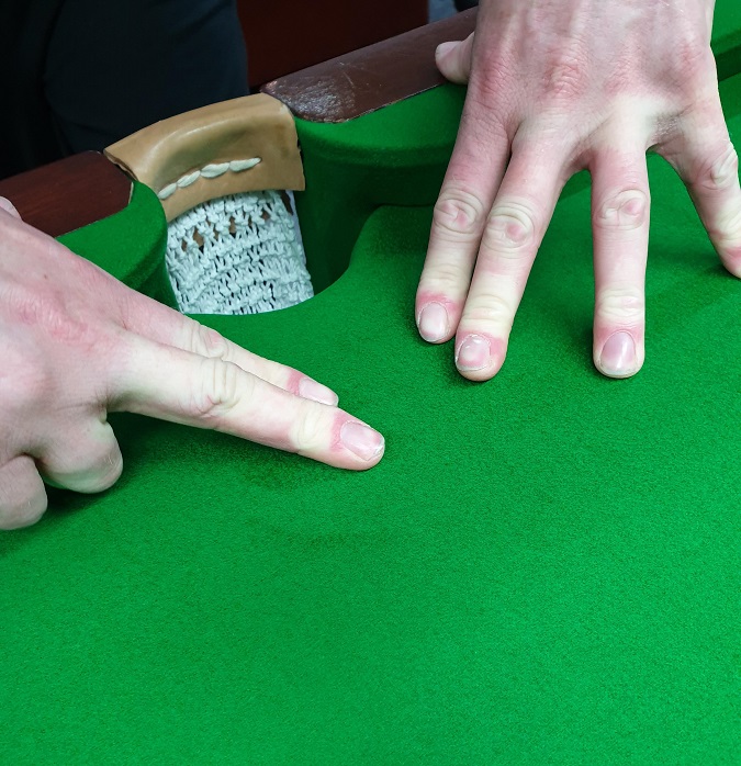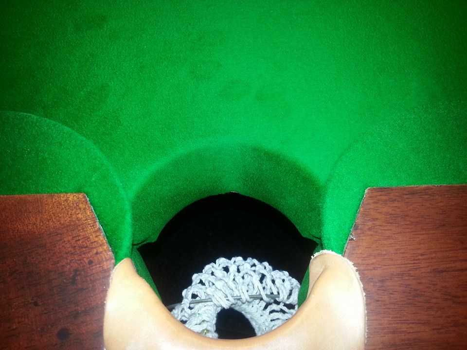 Nachteil bei dieser Methode ist, dass auf der Spielfläche um die Mitteltasche rum das Tuch lockerer ist als am Rest der Spielfläche.