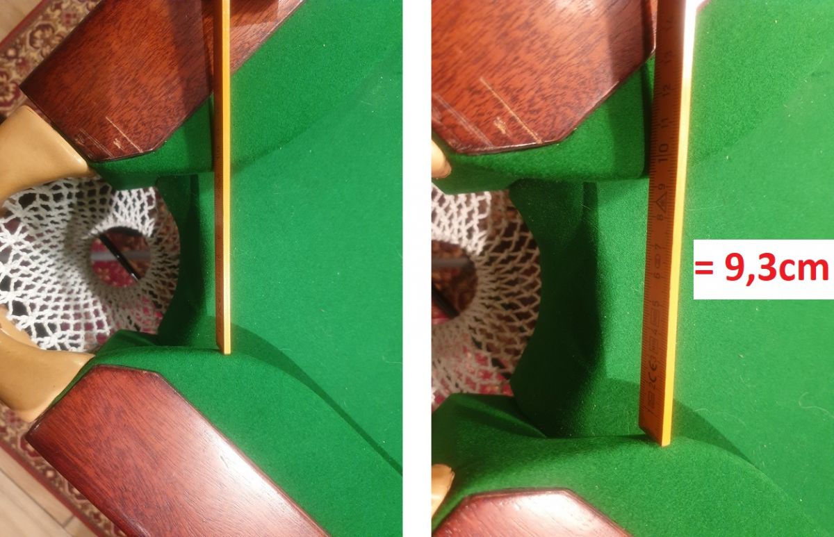 Wichtig ist beim Zusammenbauen des Tisches, dass alle vier Ecktaschen gleich groß sind und auch die beiden Mitteltaschen die gleiche Größe haben. Damit ist nicht unbedingt gemeint, dass die Mitteltaschen die gleiche Größe wie die Ecktaschen haben müssen. Nur Mitteltasche und Mitteltasche. Die Größe der Mitteltaschen hängt oft von der Bauweise des Tisches ab und kann unterschiedlich sein zur Größe der Ecktaschen.